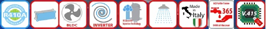 L’emploi de la technologie DC Inverter de puissance, associé à des moteurs de compresseur CC sans balais et des compresseurs tandem, permettent une modulation de puissance très large ce qui garantit une efficacité énergétique globale plus élevée des équipements . L'emploi de cette technologie à tous les composants tel que les ventilateurs et les pompes améliore le COP et l'EER et augmente considérablement l'efficacité lors du fonctionnement en charges partielles.