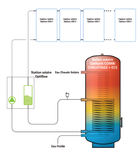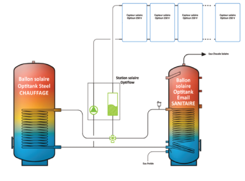 Mais avec le solaire thermique un gigantesque accumulateur d’énergie vient avec l’installation, c’est le ballon d’eau chaude.