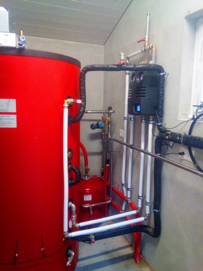 Pour cette installation il à fallut: démonter l'ancienne chaudière, poser 2 ballons de stockage, installer une PAC, raccorder sur l’ancienne distribution de chauffage, et faire le remplacement et l’extension du réseau hydraulique existant.