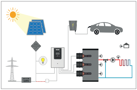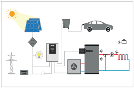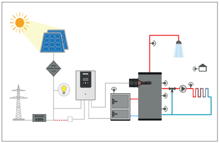 Grâce à la commande intégrée, le chauffage s'effectue de manière modulante avec l'excédent de puissance de l'installation photovoltaïque, indépendamment d'un onduleur existant.