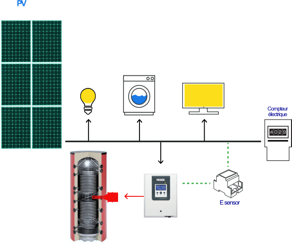 Grâce à la possibilité de montage ultérieur sur tous les ballons d'eau chaude, la consommation propre de l'installation PV augmente énormément.