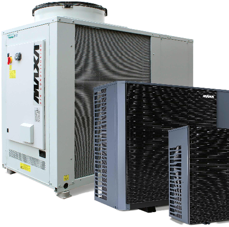 La série de PAC i-HPV de MAXA se décline en quatre modèles de 40 kW, 50, 61 et 66 kW, tous réversibles et intégrant des compresseurs Scroll DC Inverter