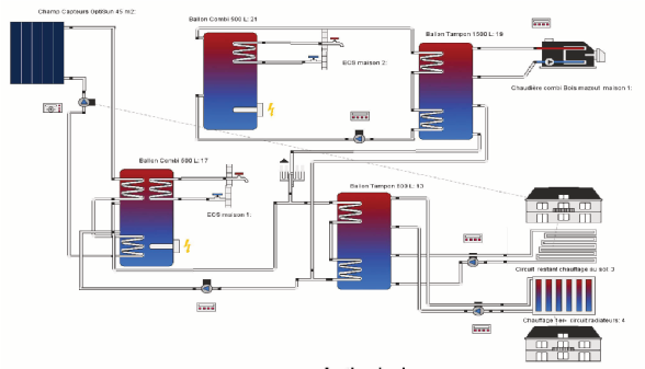 Il s’agit ici d’une installation solaire fonctionnant en mode DrainBack de format standard, simple à réaliser et à la portée de tout un chacun.
