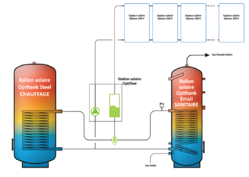 Mais avec le solaire thermique un gigantesque accumulateur d’énergie vient avec l’installation, c’est le ballon d’eau chaude.