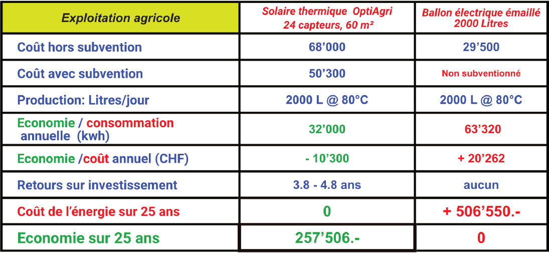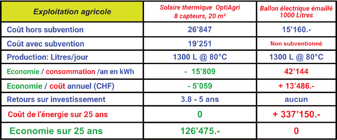 Economie annuelle d’énergie : 6’572 kWh, par rapport à une installation avec un boiler électrique.