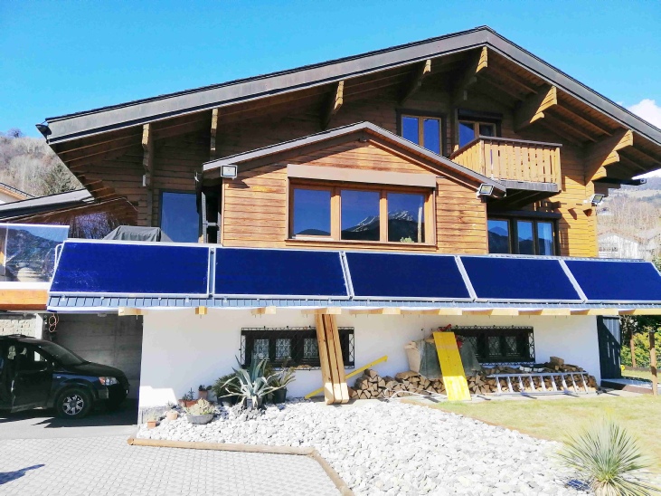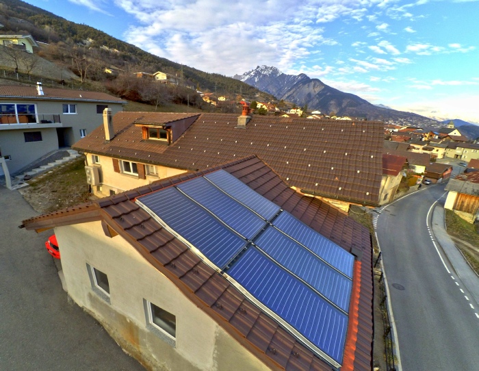 Utilisation optimale combinée solaire thermique, photovoltaïque et pompe à chaleur. Distribution du chauffage très basse température au sol en remplacement du chauffage électrique existant.
