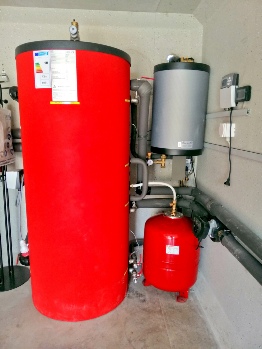 1 ballon de stockage de chaleur de 500 litres et un ballon combiné de 500 litres pour la production d’eau chaude sanitaire via échangeur INOX sans légionelle.