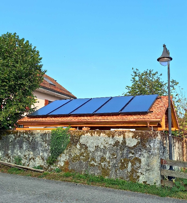 Production solaire thermique pour l’eau chaude sanitaire et appoint au chauffage.