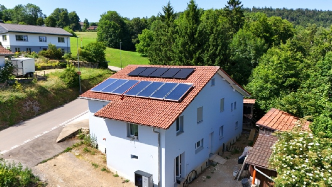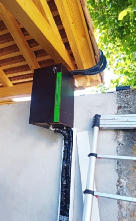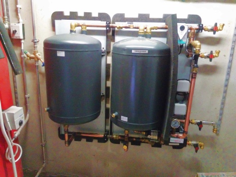 Couplé à un ballons de stockage de 800 litres et un chauffage au pellets, l’installation solaire thermique DrainBack permet la production d’ECS et un apport au chauffage pour deux appartements.