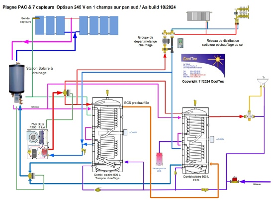 Installation solaire 24 capteurs Optisun 245, total 58,8 m 2 de capteurs solaire thermique Drain Back